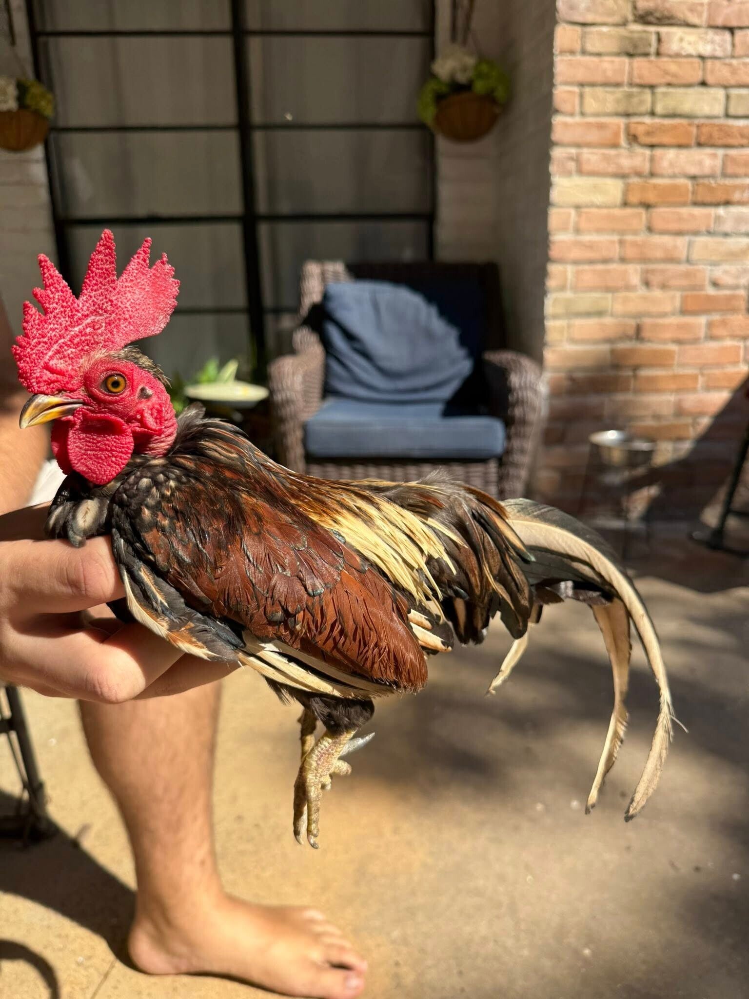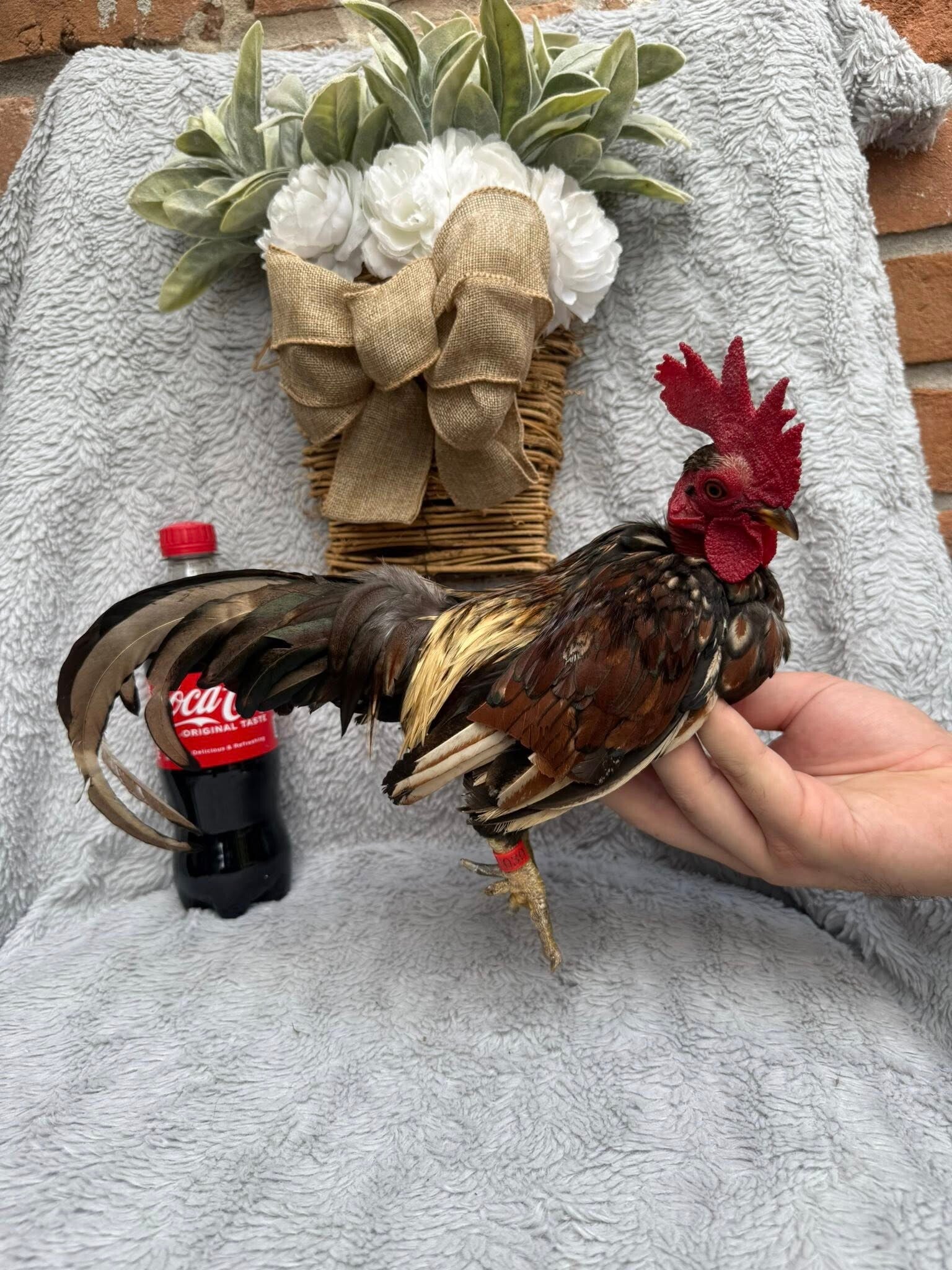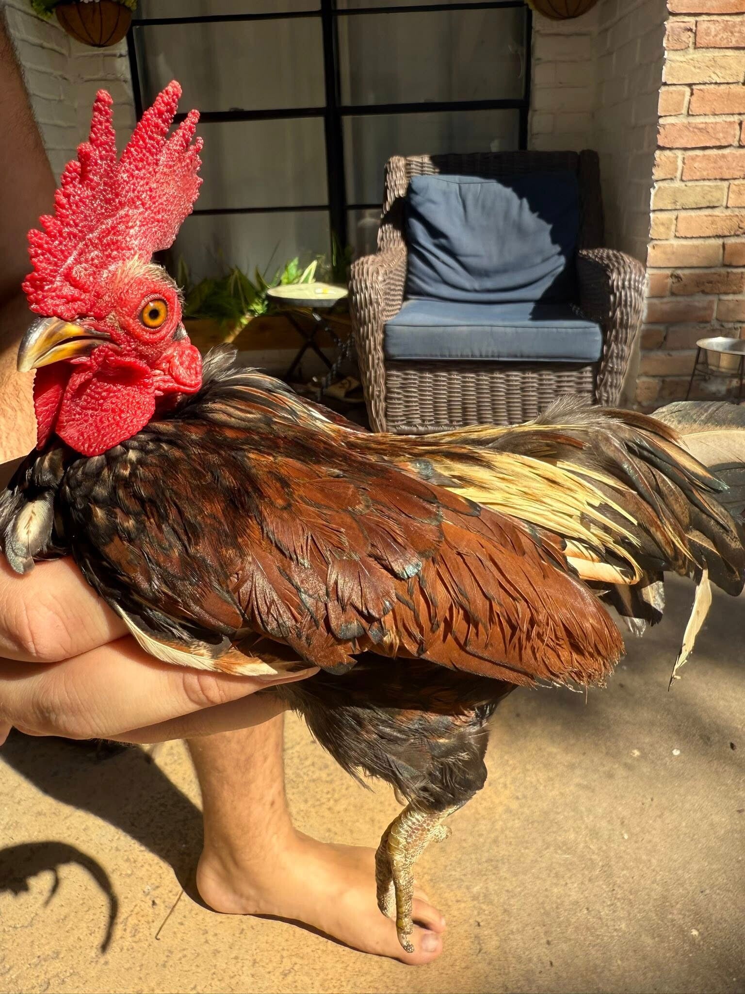 THIS BOY NEEDS TO HAVE AN OUTDOOR ENCLOSURE WHERE HE CAN SCRATCH DIRT AND BE A CHICKEN! HE IS SO INQUISITIVE AND LOVES FORAGING FOR HIS GIRLS. HE WILL EVEN BRING THEM ALL BITES OF WATERMELON! HE IS ABLE TO LIVE COVER MANY GIRLS.